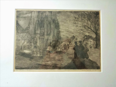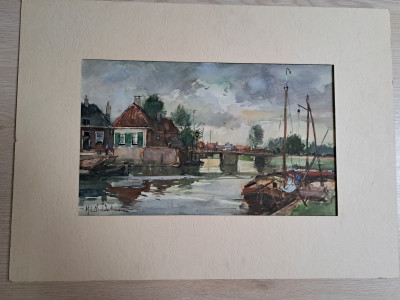 Havenzicht -trekschuit - aquarel