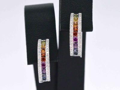 Witgouden oorbellen met multi colour saffieren en diamanten