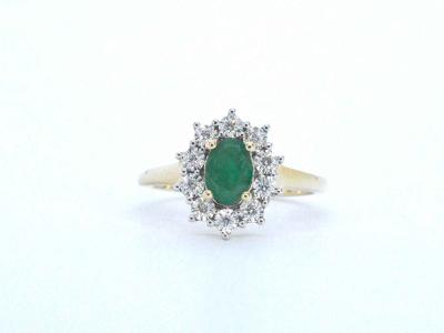 Gouden ring met een groene ovale smaragd en natuurlijke diamanten