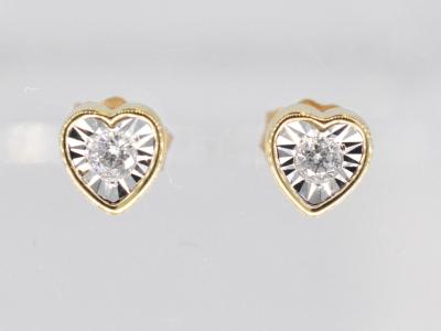 Gouden oorbellen met een briljant geslepen diamant in hartvorm