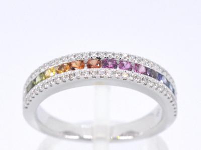 Witgouden ring met diamanten en multicolour saffieren