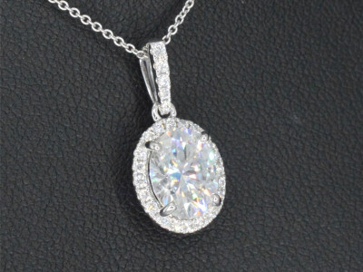 18 karaat witgouden hanger met diamanten en een ovale briljant